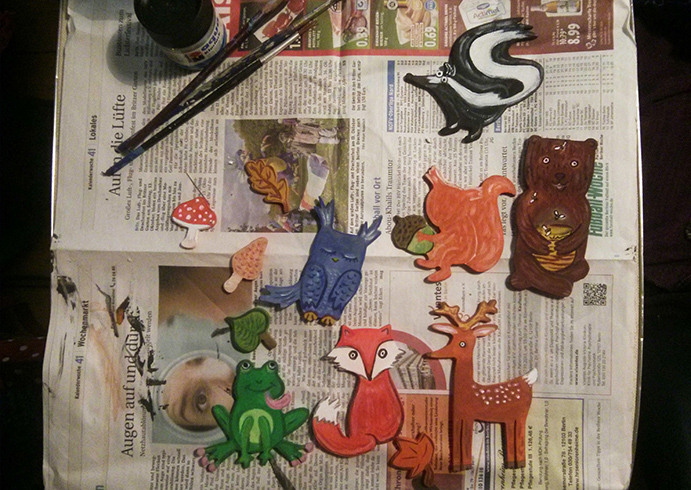 Zwischen Weiterbildung, Kunstkurs und Weihnachtsvorbereitung arbeite ich am Wald-Mobilé für das Neugeborene einer Freundin.