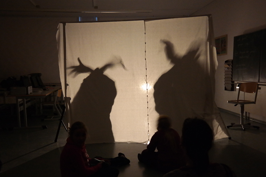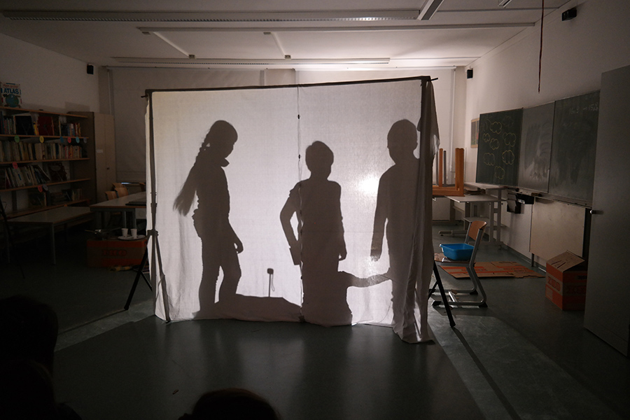 Für unser Angebot nutzen wir diesmal die Mediathek der Schule. Das Licht und Schattenspiel regt einen ganzheitlichen Bildungsprozess an, der neben künstlerischen Aspekten, auch körperliche, physikalische und interaktiv-soziale Aspekte umschließt.