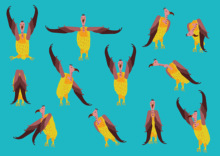 Verrückte Geier Die verrückten Geier sind ein freies Illustrationsprojekt, die vielleicht schon bald zu einem Key Visual werden. Freies Projekt, 2016 weitere Projekte